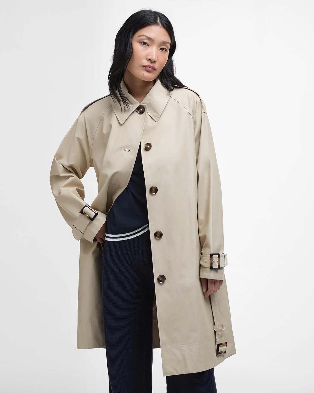 Barbour Maia dusjtette jakke kombinerer det beste av yttertøy med sin trench-inspirerte design. Med et belte til midjen og raglan-ermer, har denne stilen overdimensjonerte epauletter og passpolerte lommer for uforutsigbart værantrekk som ikke går på kompromiss.