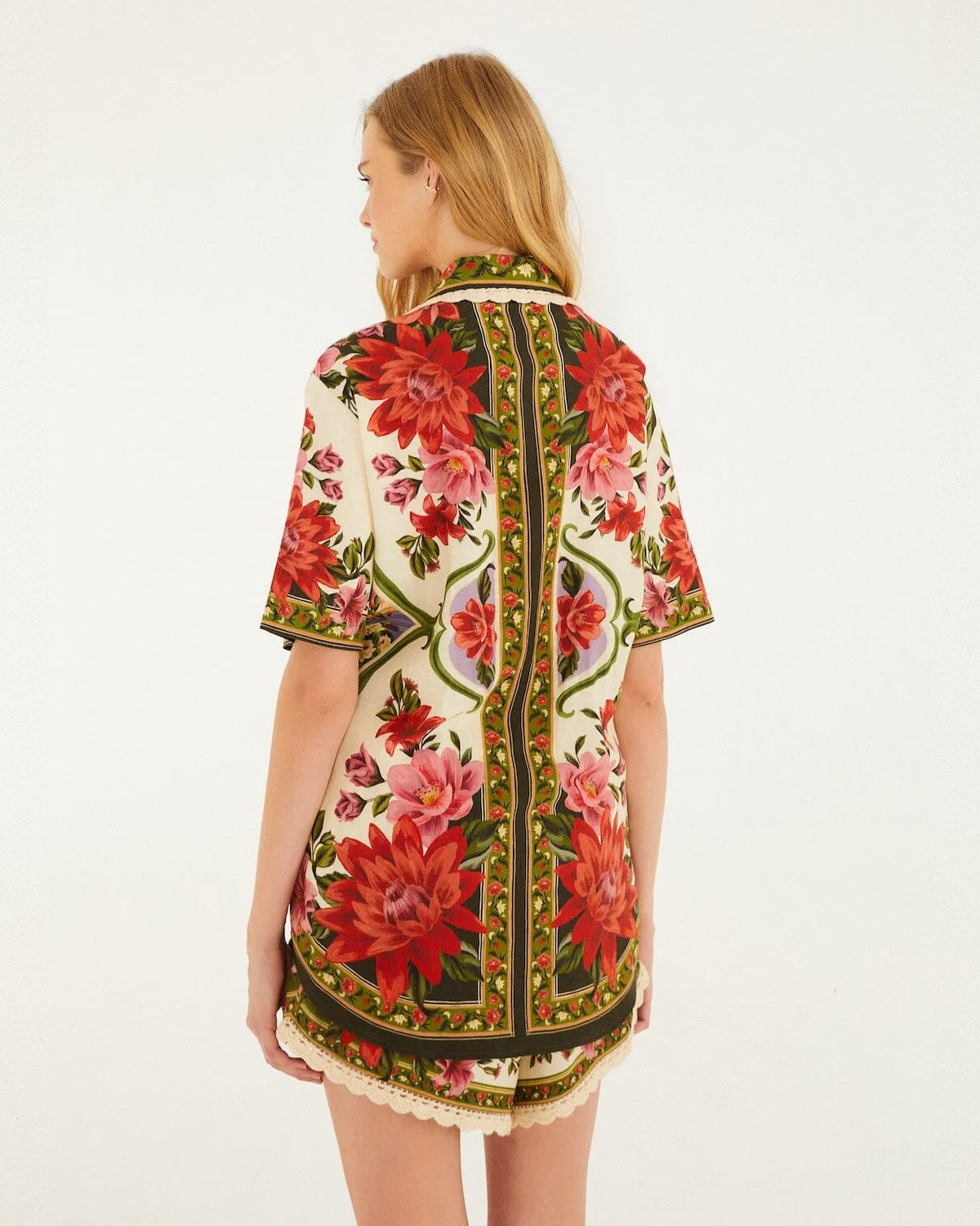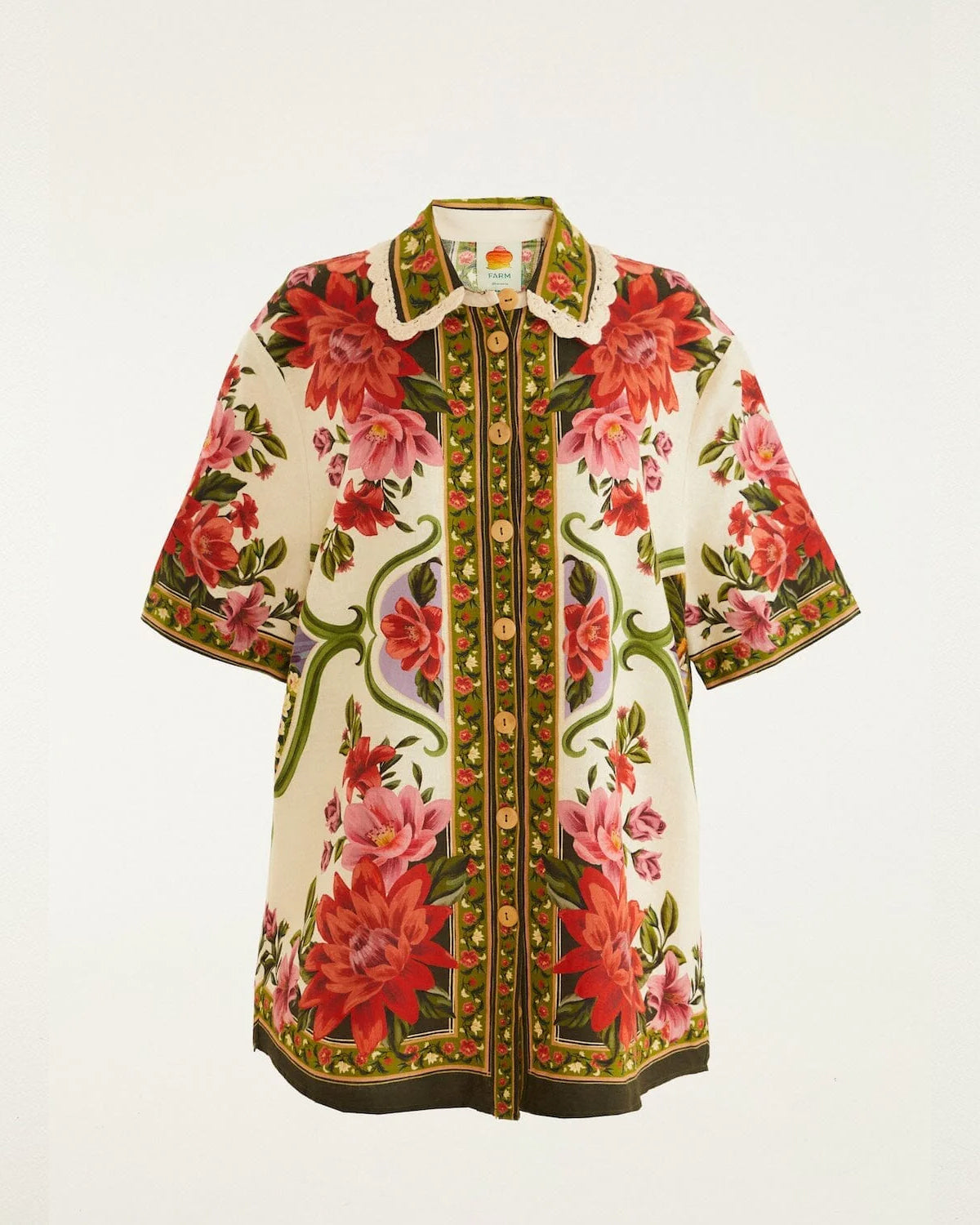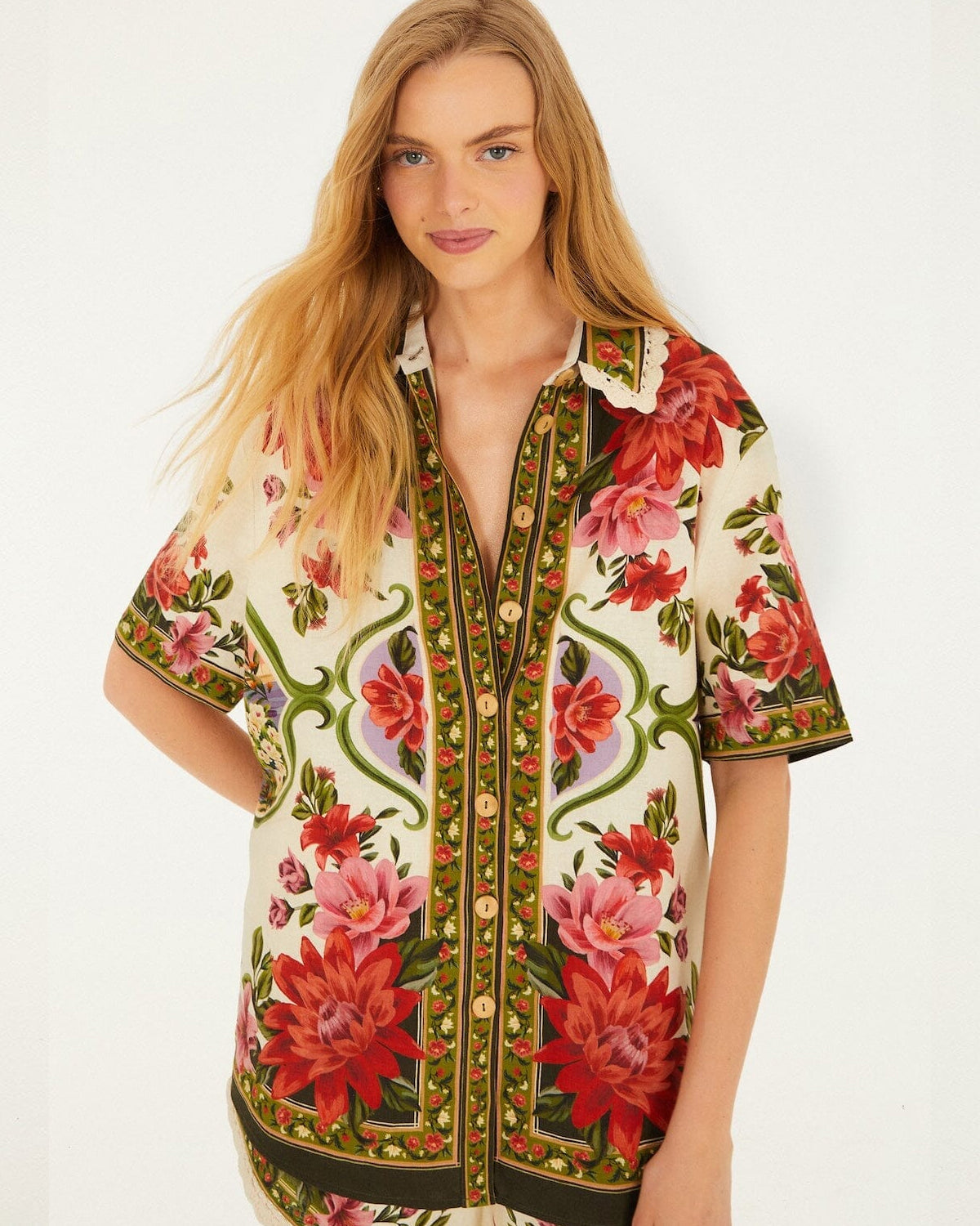 Sand Wonder Rio Crochet-skjorte fra FarmRio, laget av pustende Euroflax- og Lenzing-stoffer. Denne unisex-toppen har en avslappet silhuett med en klassisk krageutringning, som sømløst blander komfort og stil. De intrikate heklede detaljene fremkaller et solkysset, håndverkspreg, mens de naturlige fargetonene innbyr til en rolig strandstemning. Perfekt for øyeblikk der letthet møter diskret eleganse med en leken, organisk ånd.