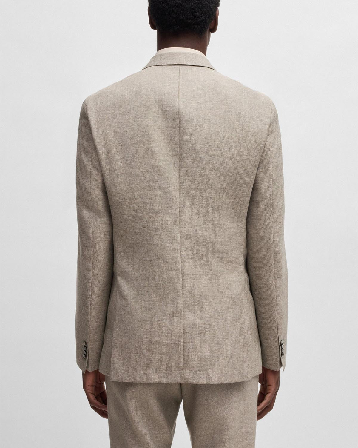 Slim-fit dress i mønstret virgin ull fra BOSS. Med myke skuldre og en definert passform, er denne dobbelsnappede blazeren og høykomfortable buksene designet for et moderne utseende
