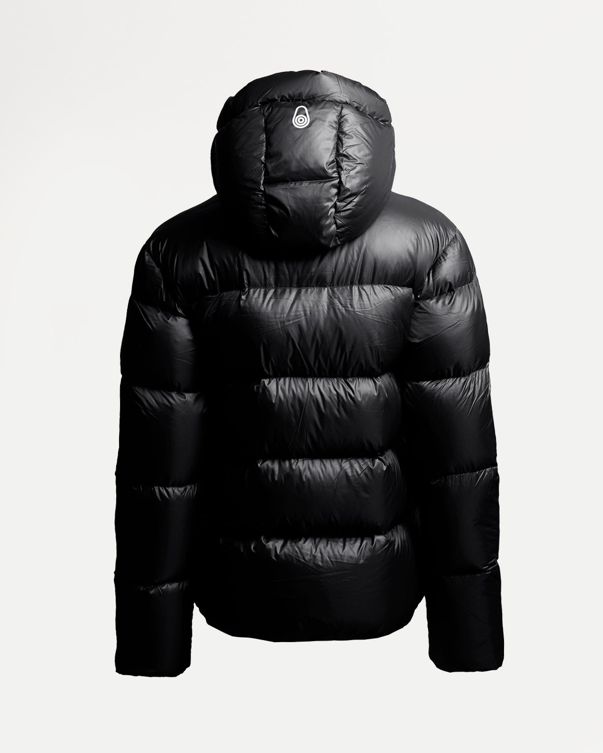 Sky Down Hood er en allsidig, vind- og vannavvisende dunjakke, konstruert for å gi varme og beskyttelse på kalde vinterdager. Den er laget av lett, resirkulert nylon og har et fôr laget av termoregulerende grafen og nylonstoff. Ytterskallet er behandlet med en PFC-fri DWR-finish for å avvise vann og forbedre vannavrenning.