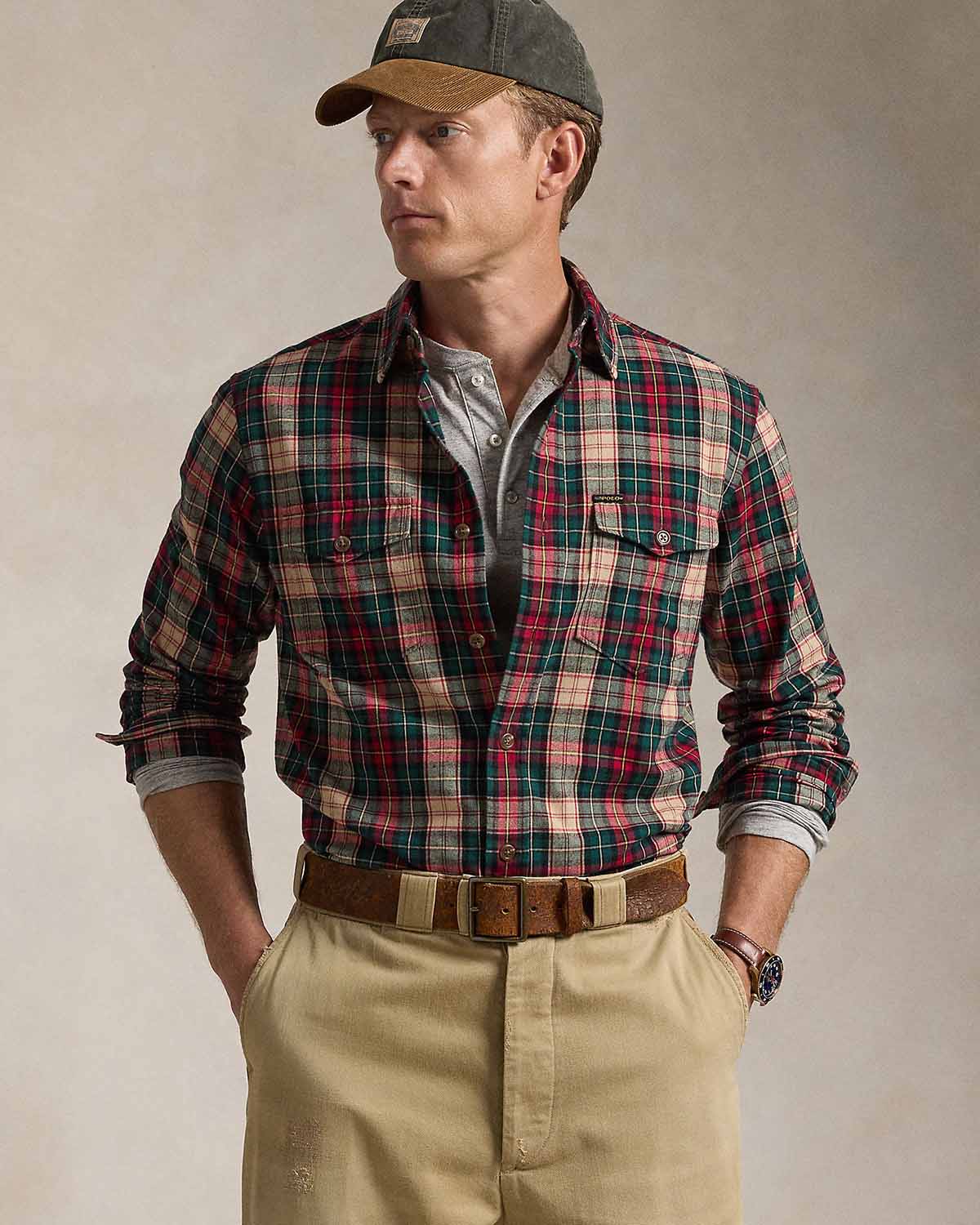 CUSTOM FIT PLAID BRUSHED FLANNEL SHIRT