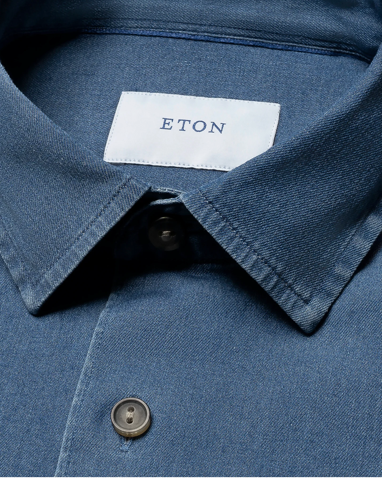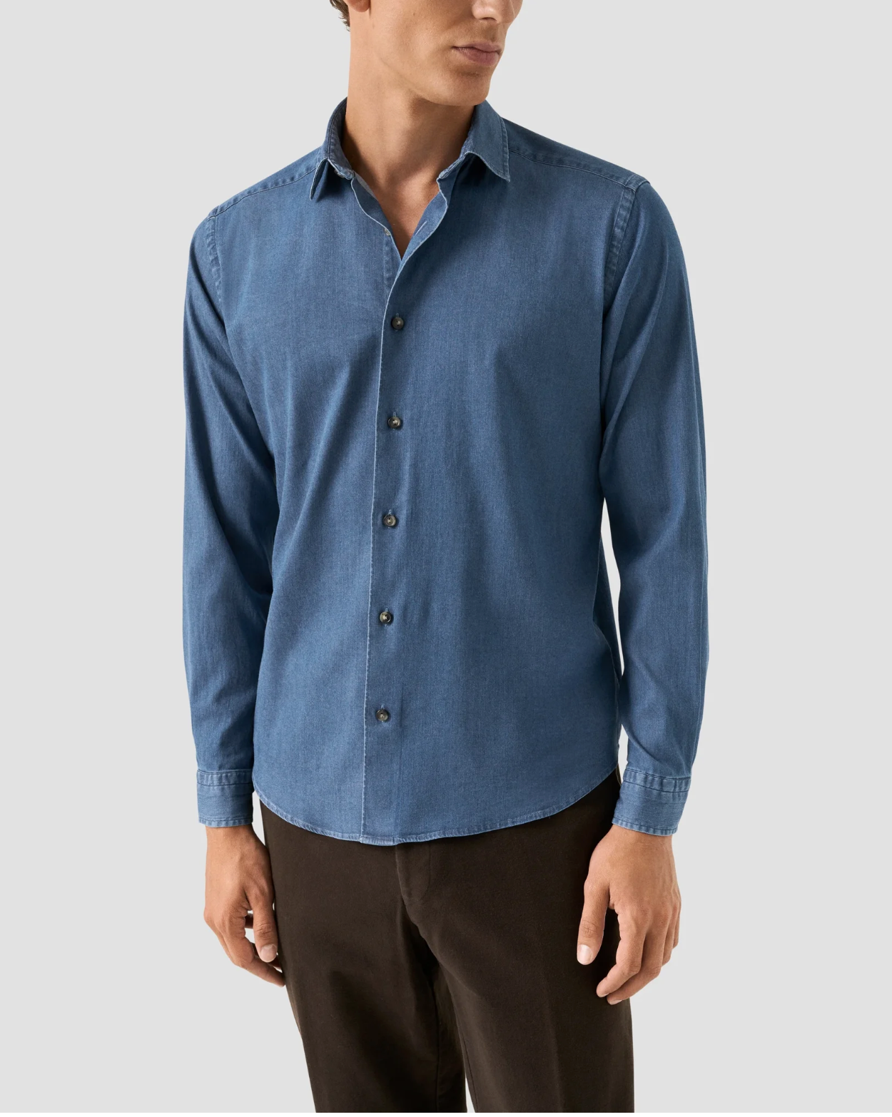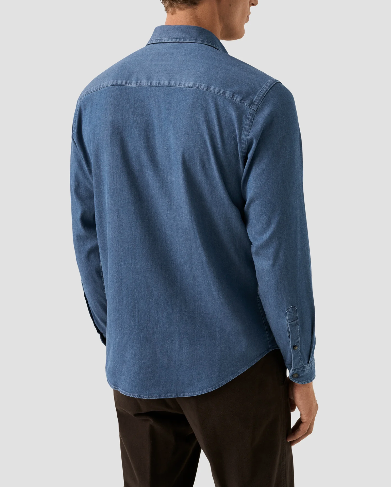 En uformell skjorte laget av italiensk vevd bomullsdenim med ekstra stretch for fleksibilitet.