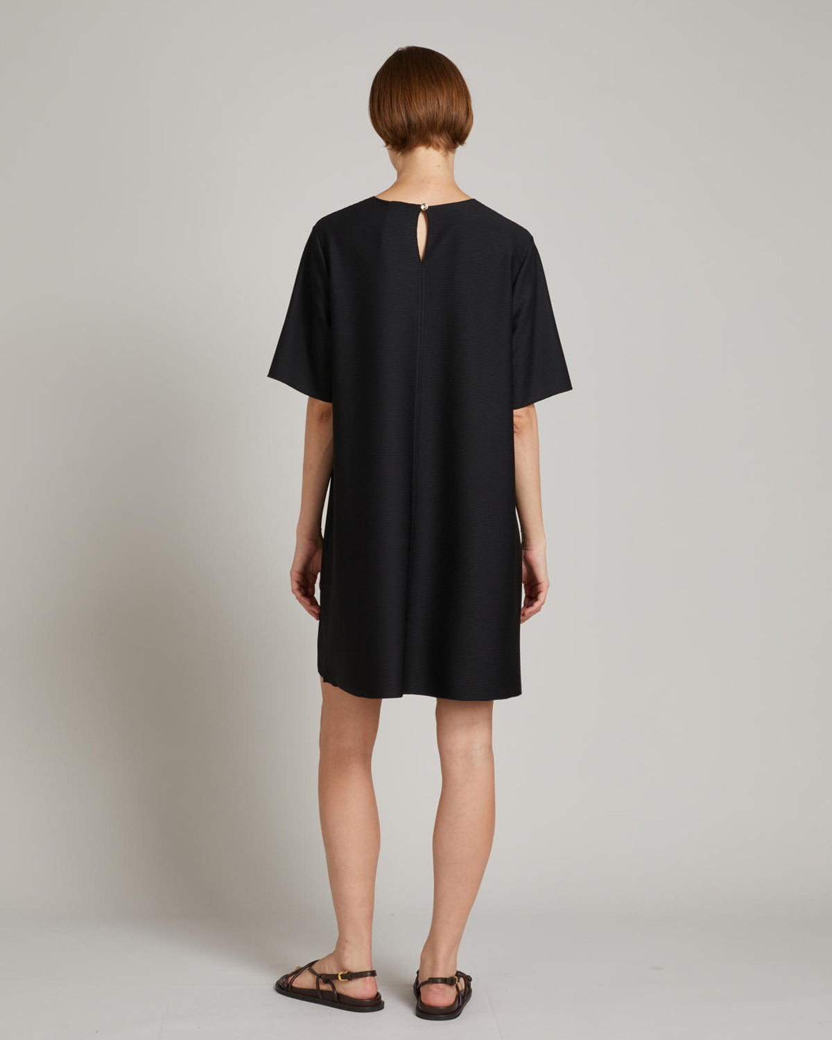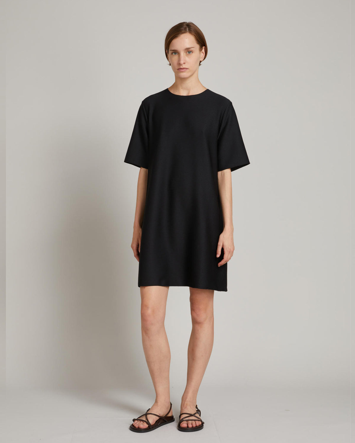- Rund hals og løstsittende, korte, innstikkede ermer