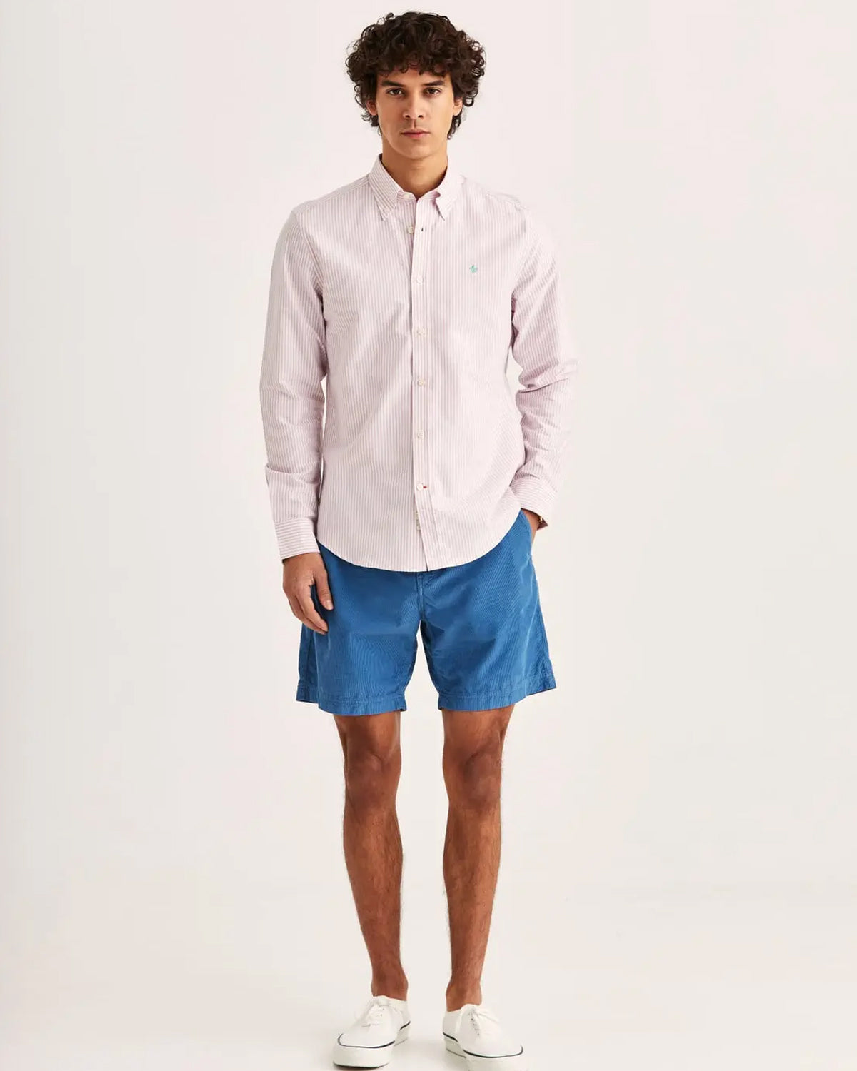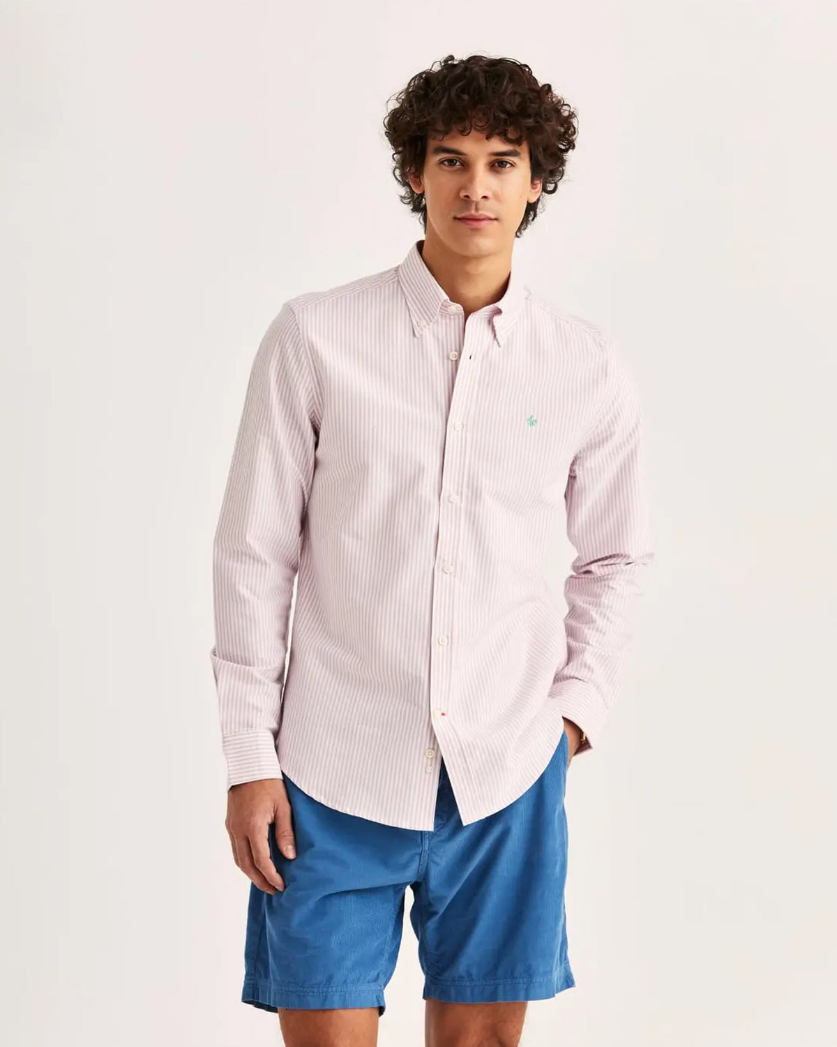 Douglas Oxford Stripe-skjorten hyller arven fra britisk preppy-stil. Vevd av mykt bomullsstoff fra Oxford med tidløse striper, er den en hilsen til klassisk campus-antrekk og uanstrengt helgeraffinement. Den smale kragen og den slanke passformen gir den en moderne definisjon – polert, allsidig og tydelig Morris-aktig.