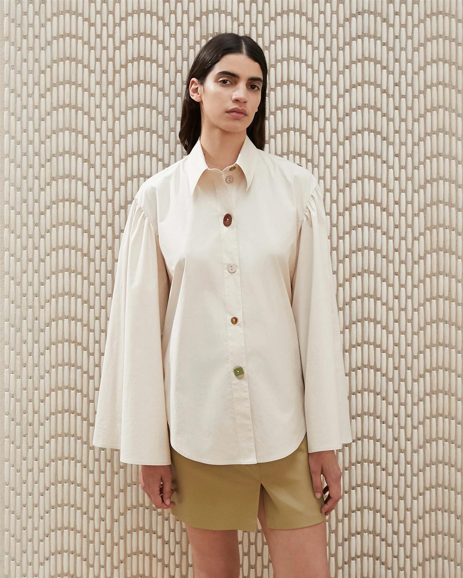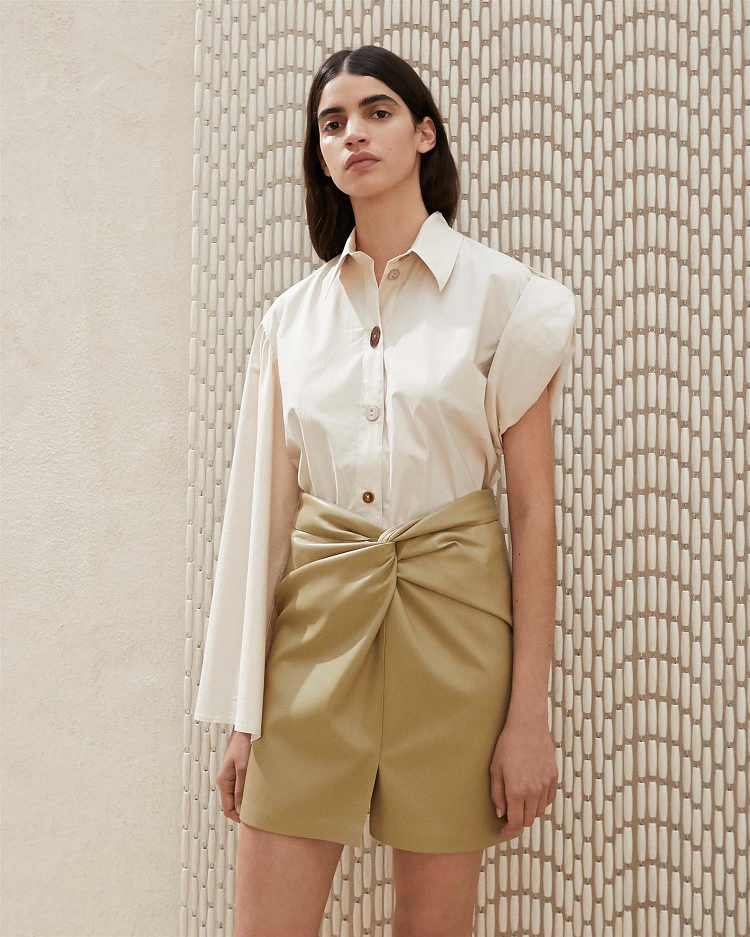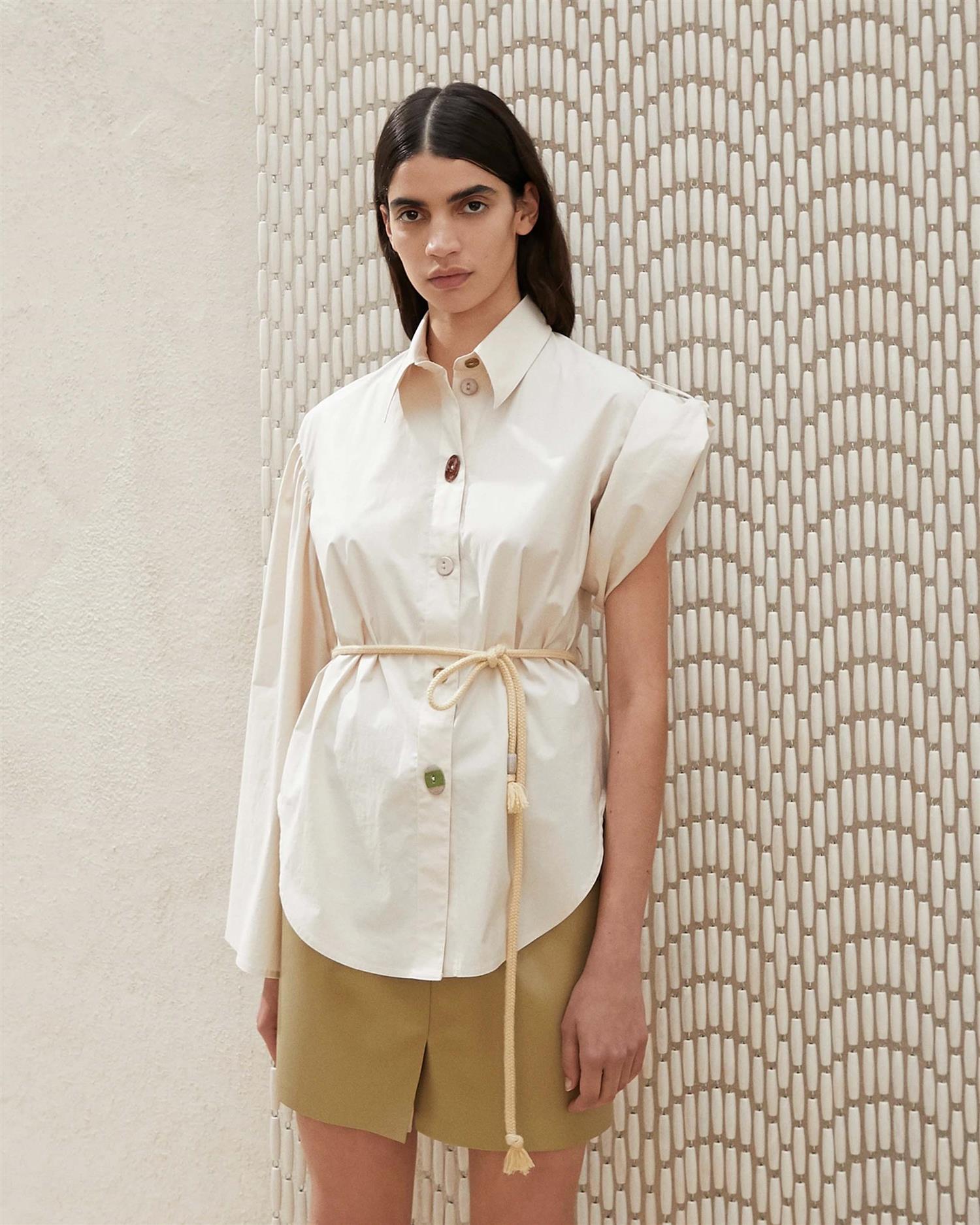 Nanushka Tammi Peasant Shirt er en lekker skjorte med knytebelte rundt livet og armer som kan brettes opp eller bæres ned. Lukkes med håndlagde keramikk-knapper i front.