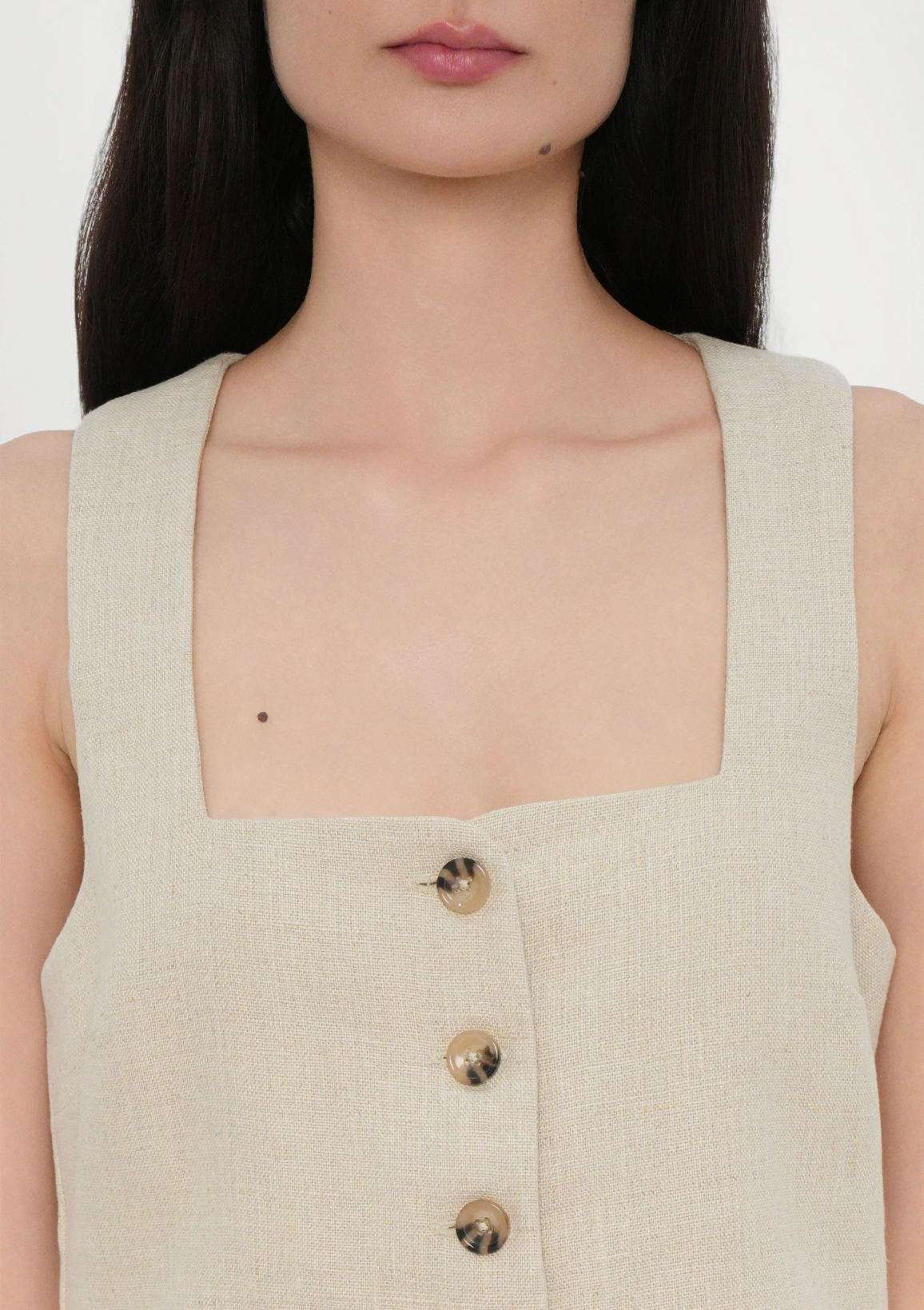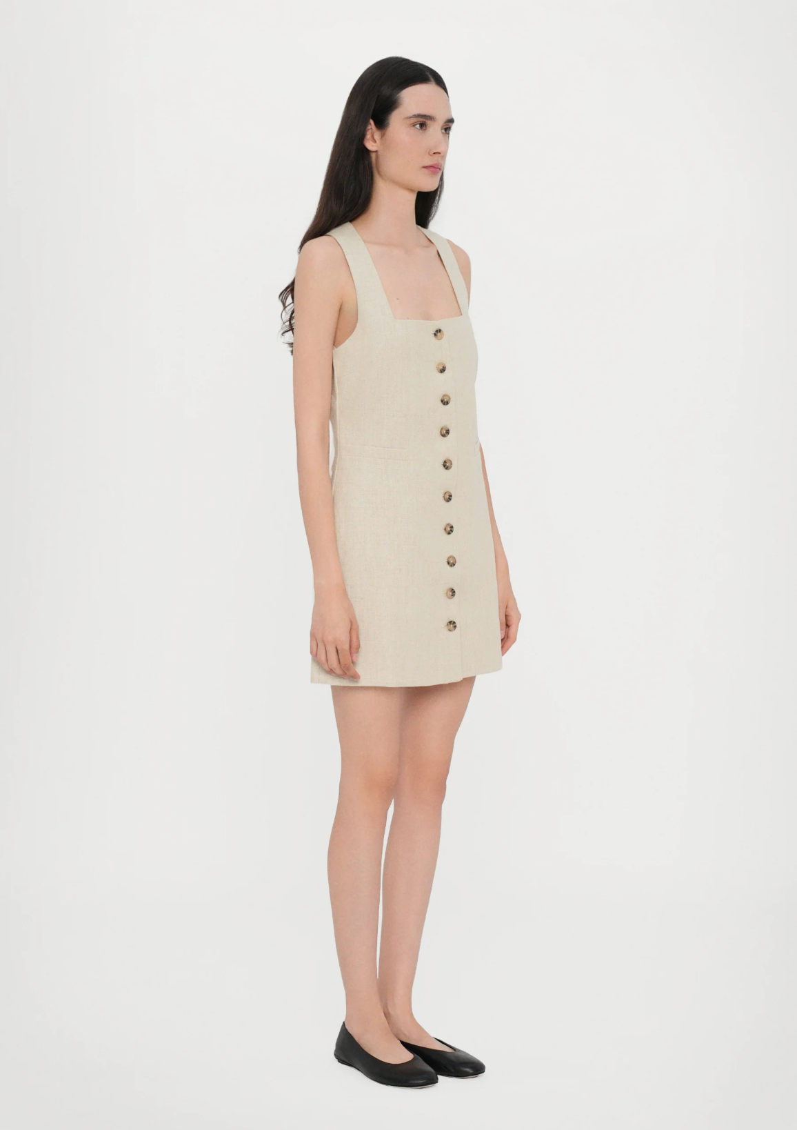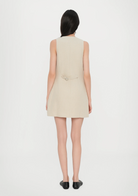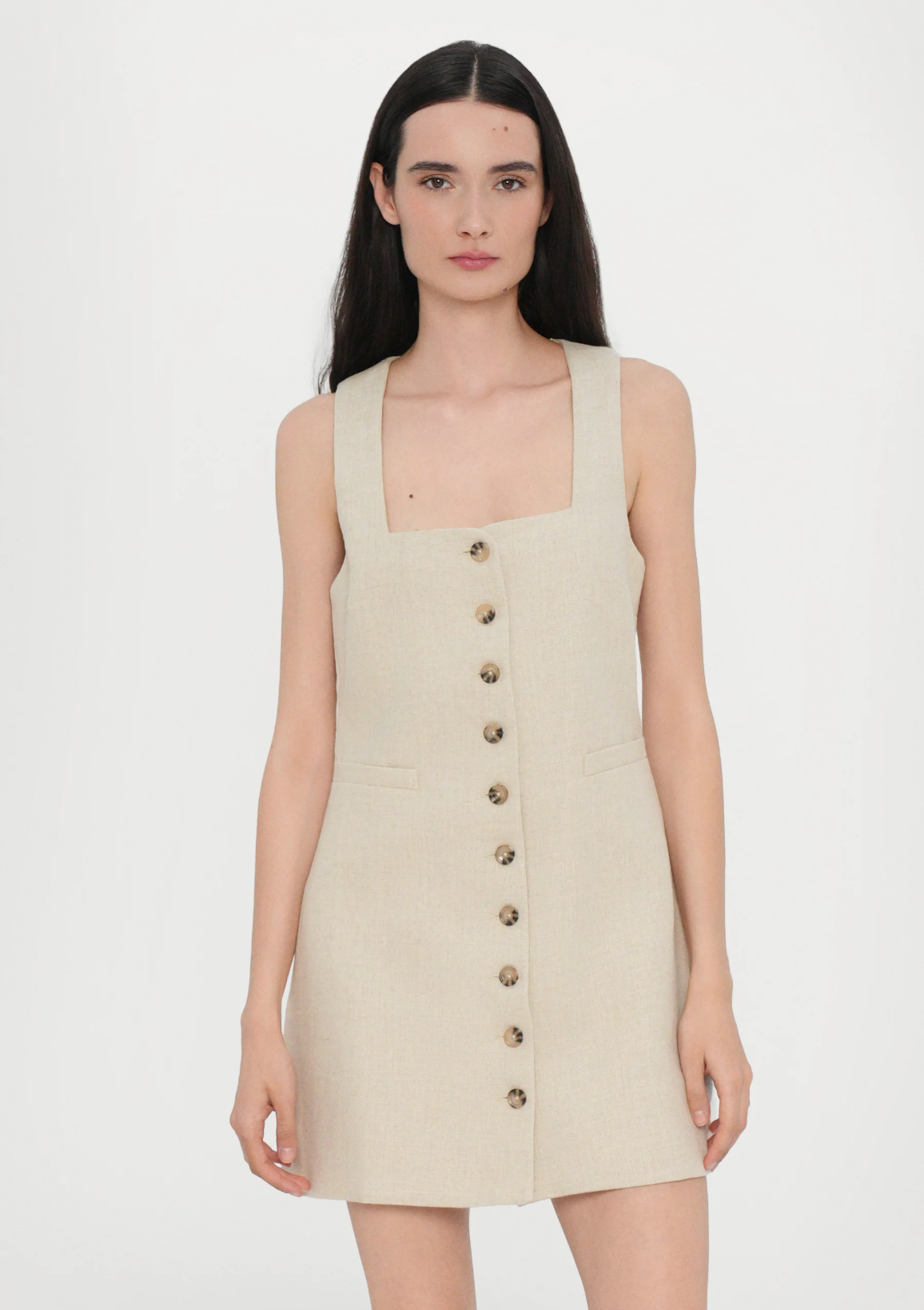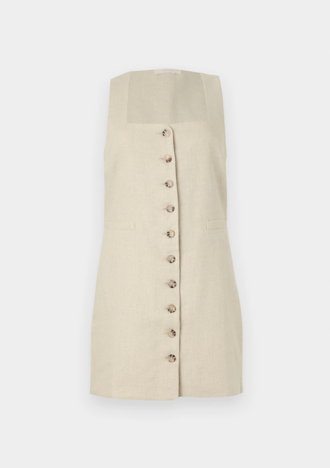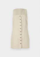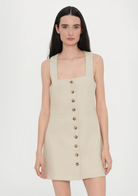 En signatur FAITHFULL silhuett, redesignet med nye forhøyede detaljer og designet av en 100 % europeisk Flax® linfabrikasjon. Det er en ermeløs minikjole med lav firkantet hals og brede stropper. Halvmontert med et rett skjørt, den har klassiske knapper foran samt et midjebelte bak, justerbar i lengde, og frontlommedetaljer. Helfôret og tilbys i en kremhvit stil med enkelt tilbehør for sommerinspirert hverdags- eller feriebruk.
