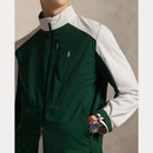 Størrelse medium har en lengde foran på 68 cm, en lengde bak på 69 cm, en skulderlengde på 46 cm, en brystlengde på 102 cm og en ermelengde på 86 cm. Ermelengden er tatt fra midten bak i nakken. Høyhals. Toveis glidelås foran med klaff øverst som forhindrer gnagsår. Glidelåser spesialutviklet med en «RLX»-logo. Lange ermer. Justerbare borrelåsfliker i mansjettene. Ventilasjonsmaljer under armene. Venstre brystlomme med glidelås. To lommer med glidelås foran i midjen. Innvendig venstre lomme for poengkort. Pakker i høyre midjelomme, som har en bæreløkke. Silikon «RLX»-fane på høyre skulder og midt bak i nakken. «Ralph Lauren» trykt på innsiden av stolpen. «RLX» og «Packable» trykt på den pakkebare vesken. Elastisk kant nederst. Uforet. Brodert signaturpony på venstre bryst. 100 % polyester. Maskinvaskbar. Importert. Modellen er 185 cm og bruker størrelse medium.