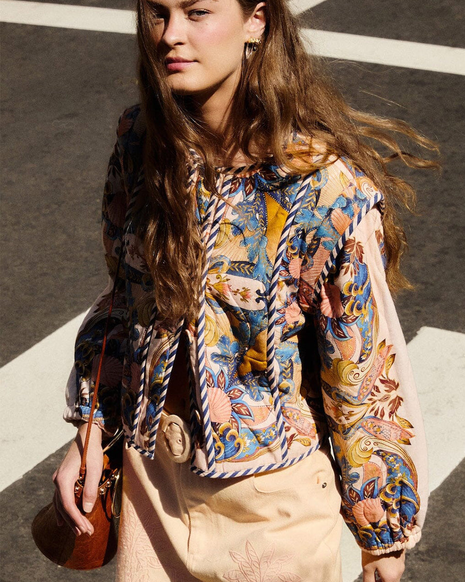 Pakk deg inn i uanstrengt sjarm med den myke rosa Sea Garden Scarf Buttoned Jacket fra FARM Rio. Den myke rosa fargen blomstrer med finurlige, sjøinspirerte broderier, og bringer livlig havliv inn i garderoben din. Den runde halsen rammer inn ansiktet ditt forsiktig, mens den avslappede silhuetten faller elegant ned. Lekne skjerflignende paneler gir et snev av bevegelse og varme, noe som gjør denne jakken til en gledelig omfavnelse på vindfulle dager – perfekt for de som verdsetter komfort med et snev av kunstnerisk utførelse.