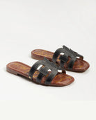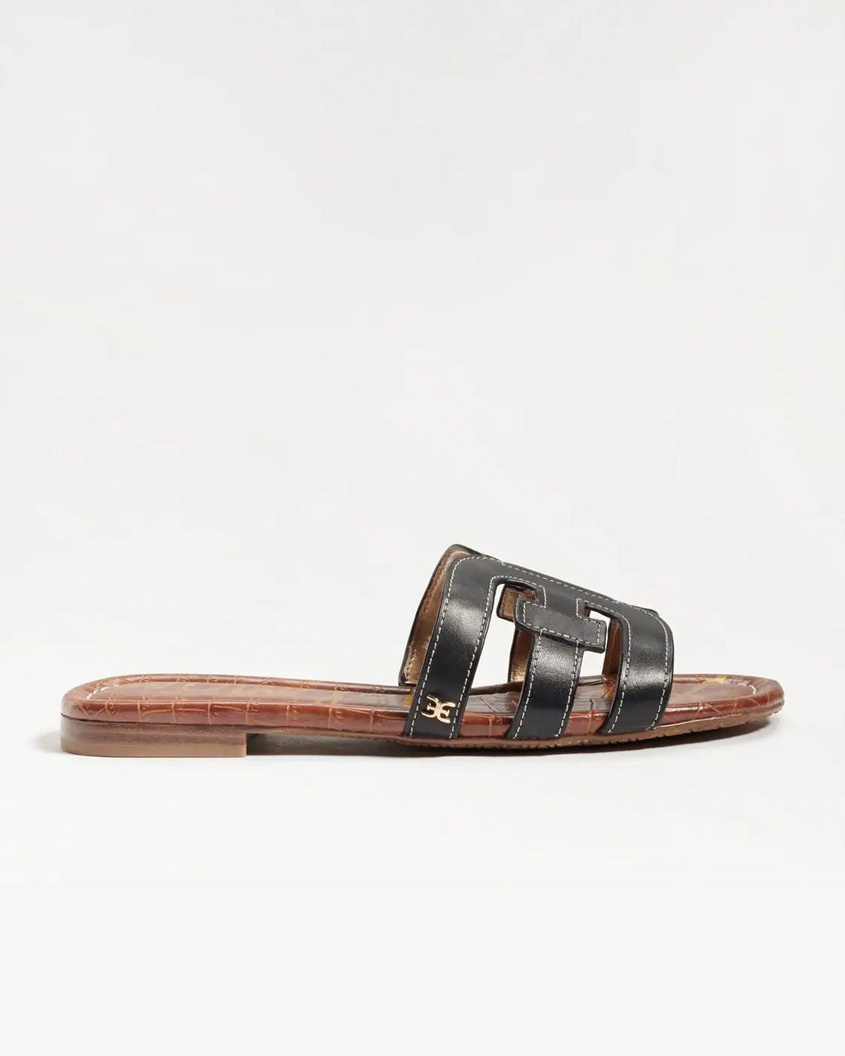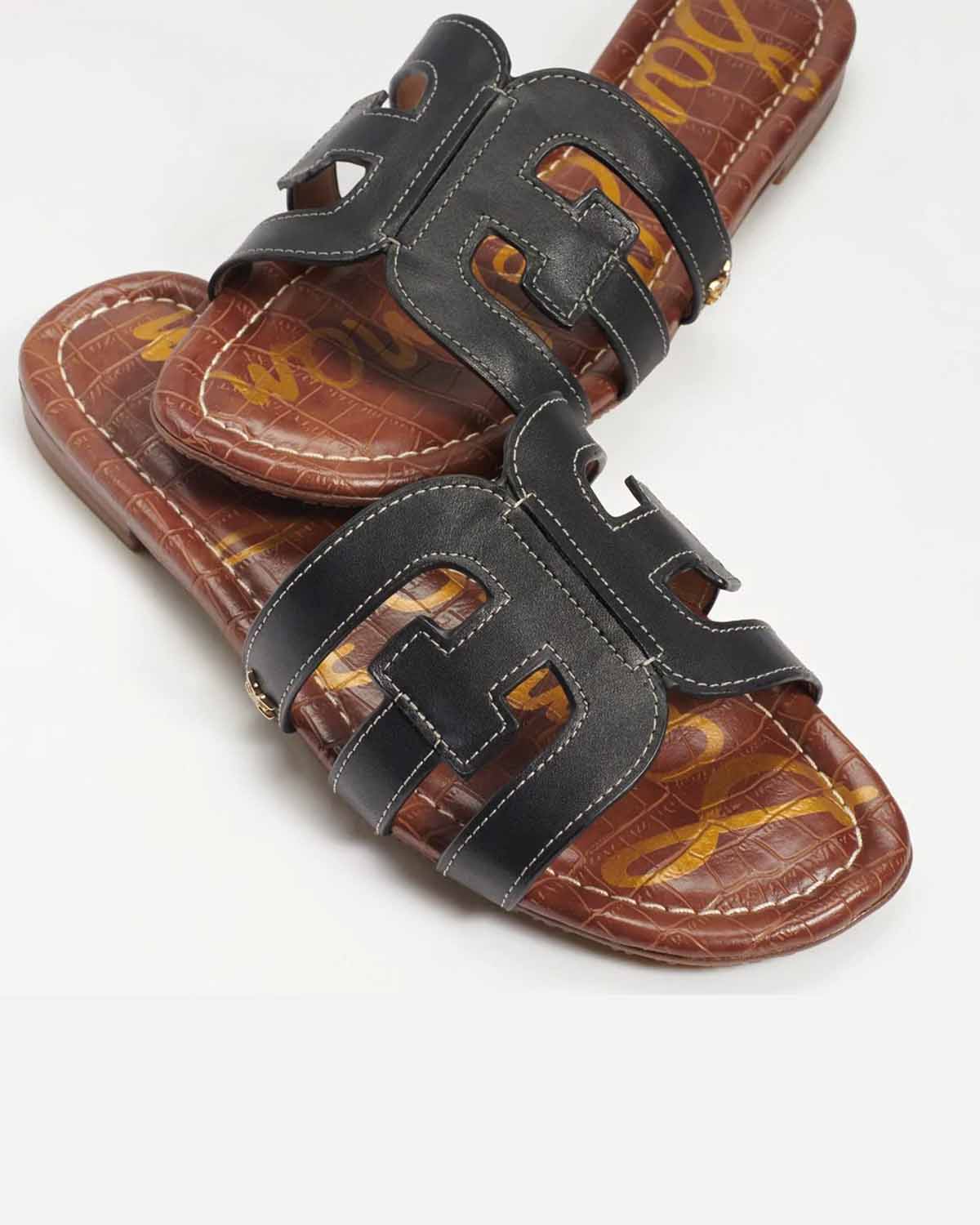 Sort skinnsandal til dame fra Sam Edelman! Bay Slide Sandal Black Leather er en slippers med brun såle og sort overdel. Skoen har et klassisk og tidløst uttrykk og passer like fint til jeansen som til sommerkjolen!