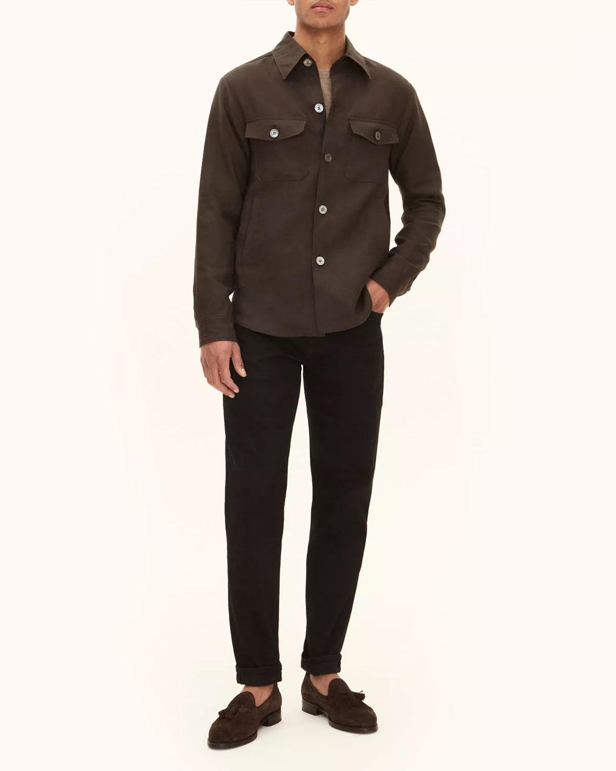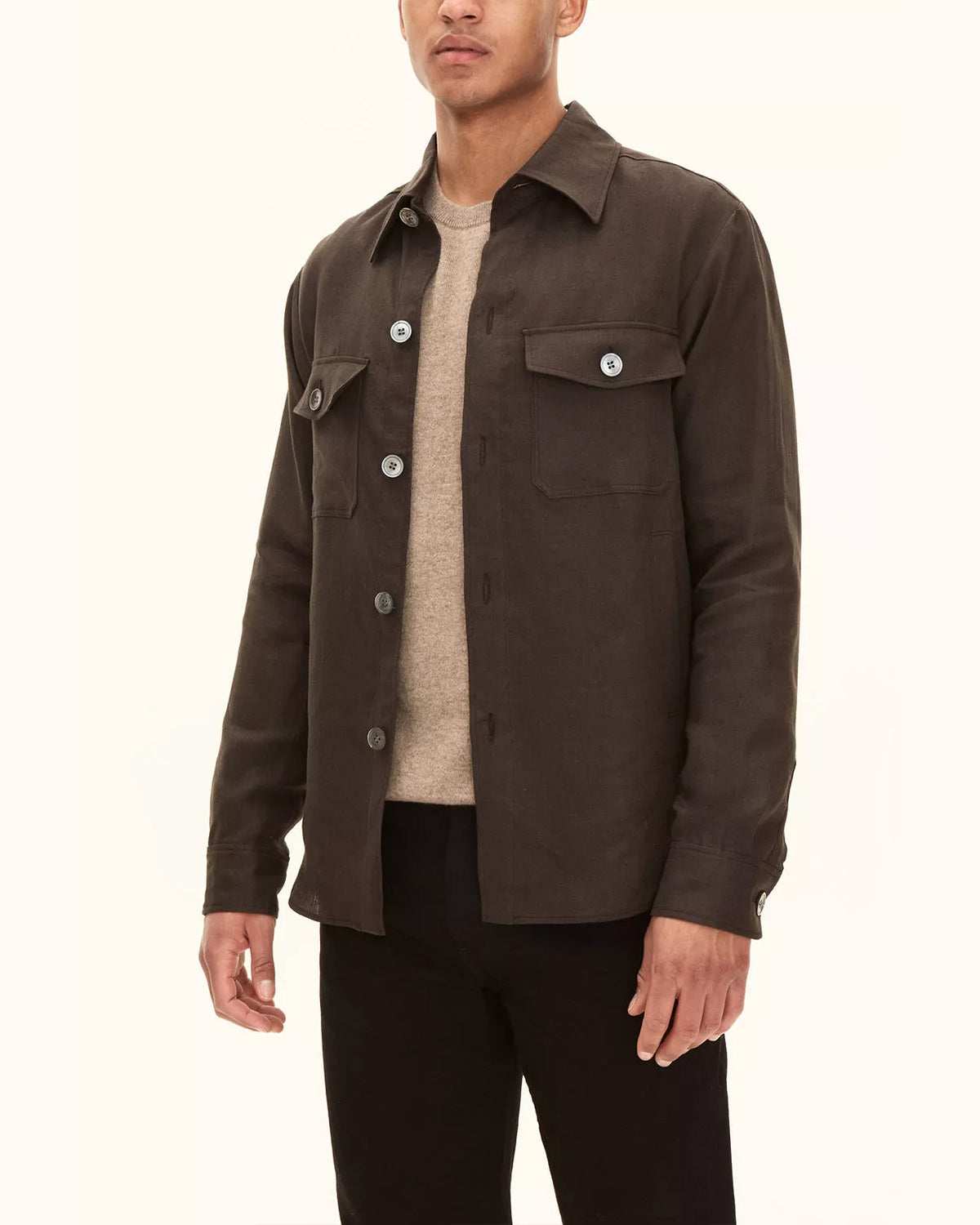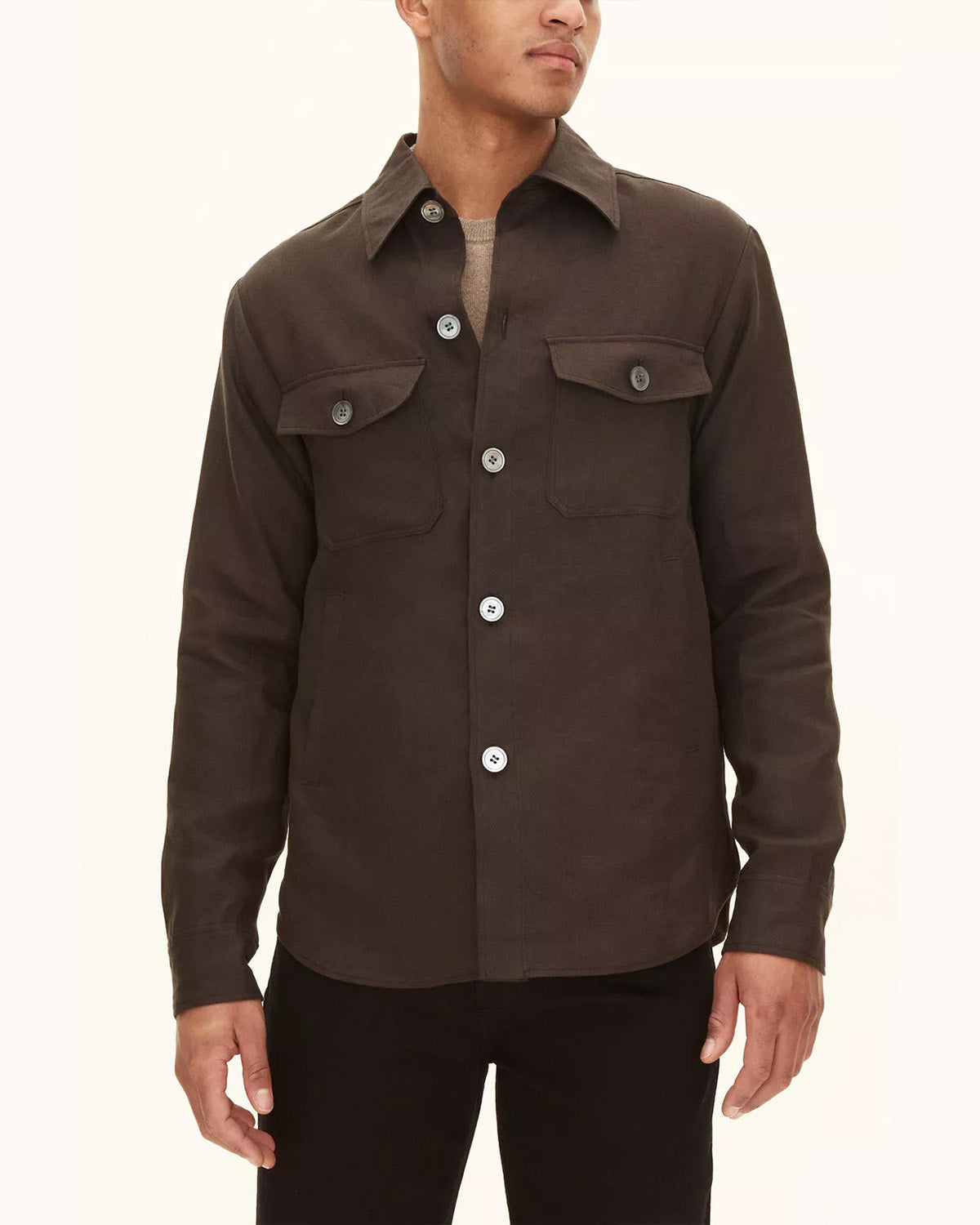 Skjortejakke i regular fit med ekte perlemorknapper. Laget av 100% lin.