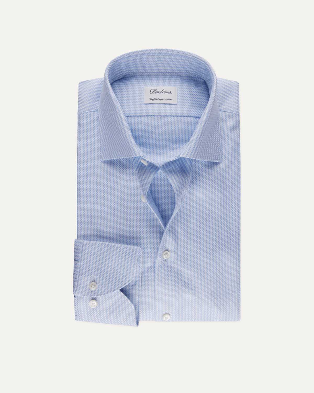 Denne mønstrete twillskjorten er laget av twofold bomull og har perlemorsknapper, enkle mansjetter og cut away-krage.