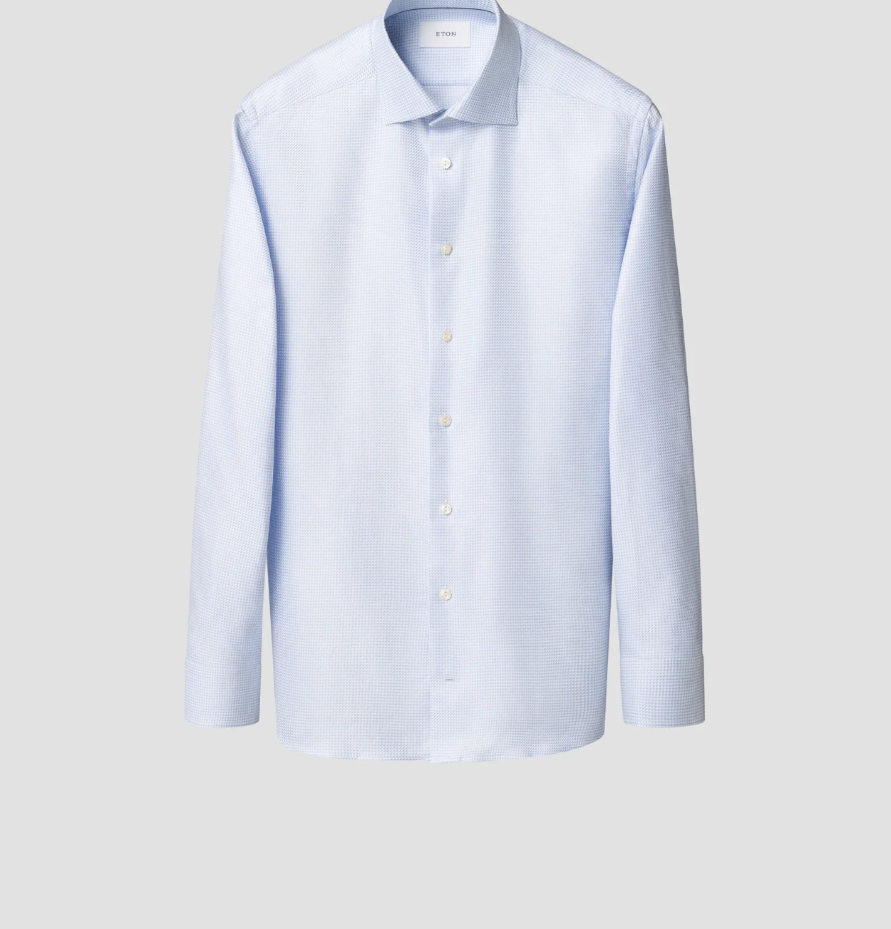 Eton skjorte i en rik, skinnende og luksuriøs tekstur. Dette er kongelig skjorte, vevd av dobbelt to-lags bomullsgarn i et svært komplekst, teknisk mønster med en naturlig 3D-effekt.