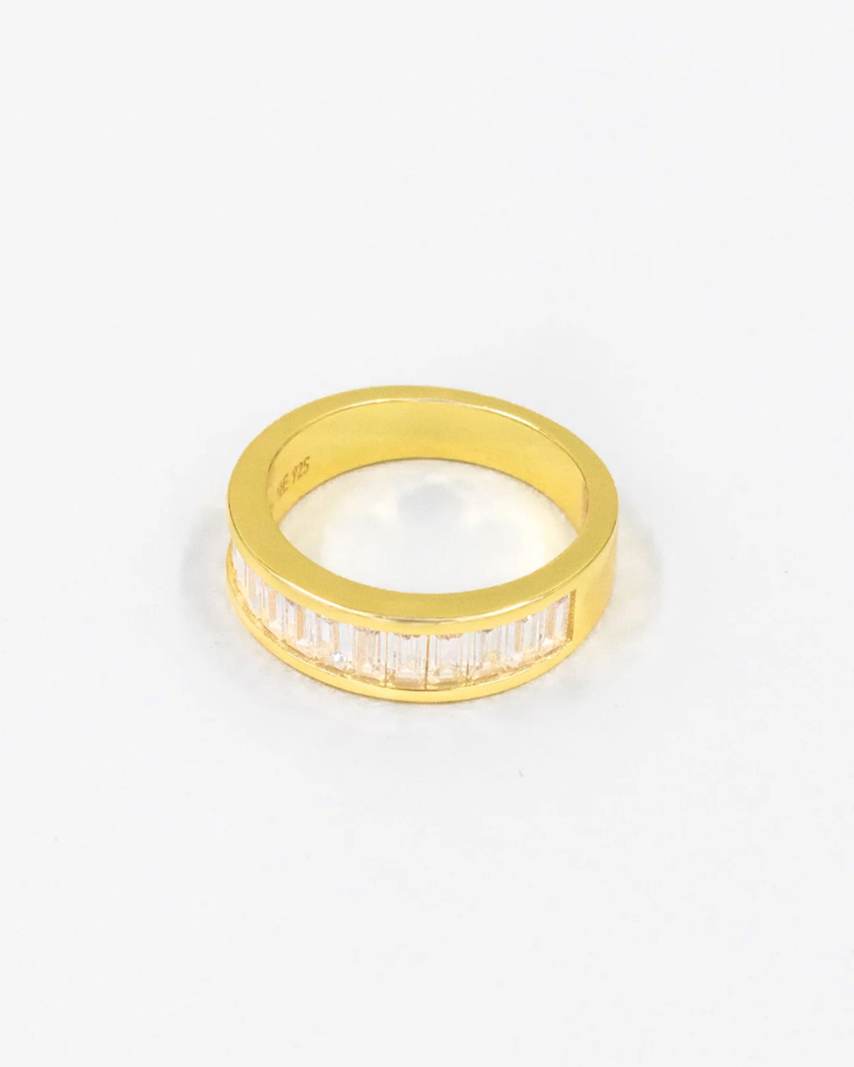 Diamond Row Ring fra Who Is She. En delikat ring i 14k gullforgylt sølv, med en topp dekket av skinnende Zirconia steiner. Gravert SHE på innsiden.