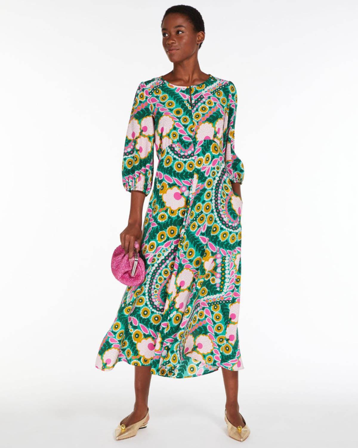 Green Floral Print Midi Dress