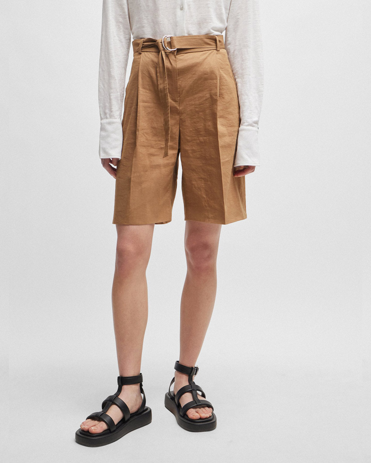 Shorts med høyt midje fra BOSS, skåret til en tilbakelent passform med vide ben i linblanding med stretch.