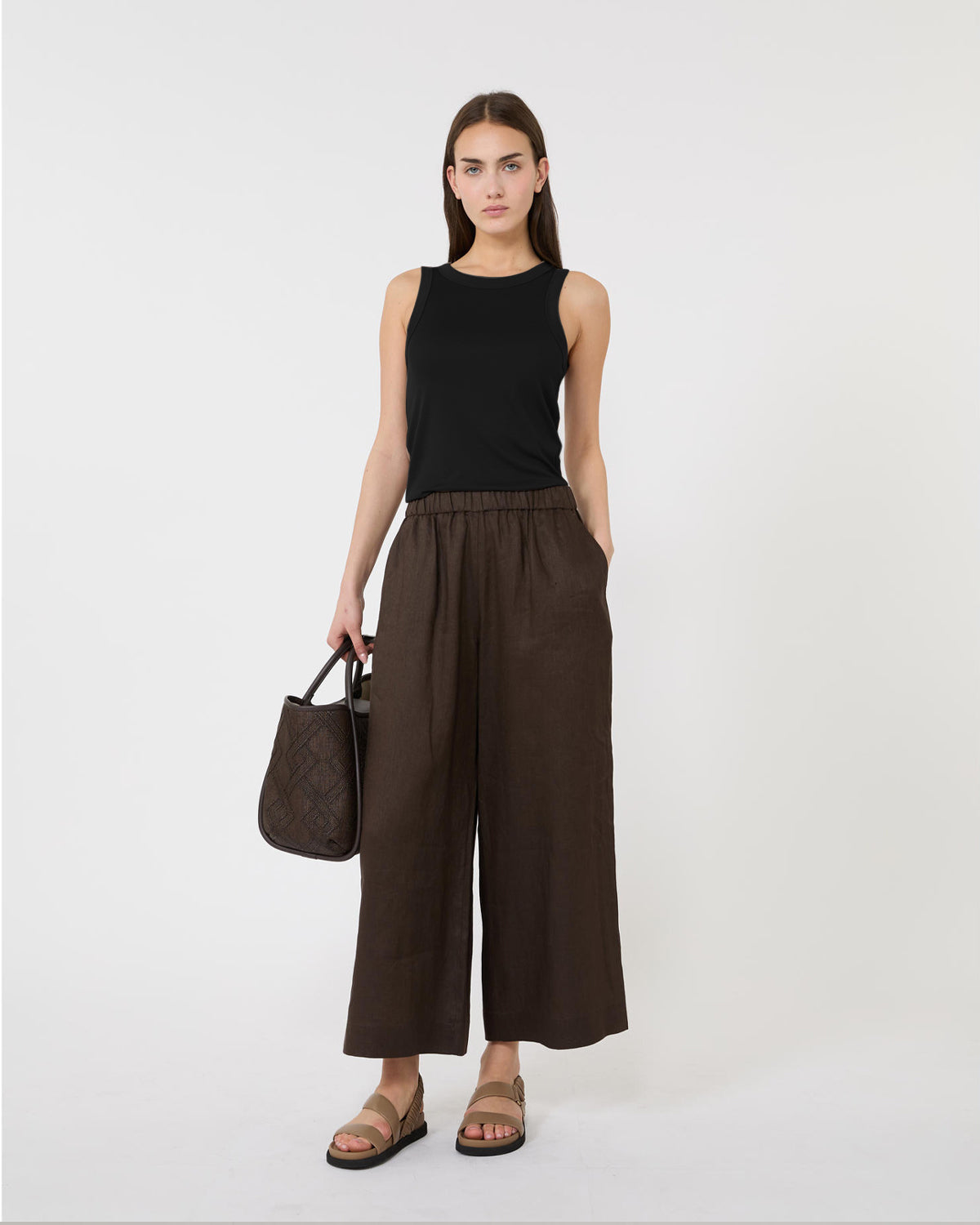 Slim-fit ermeløs topp med et silhuettfremhevende ribbestrikkmønster.
