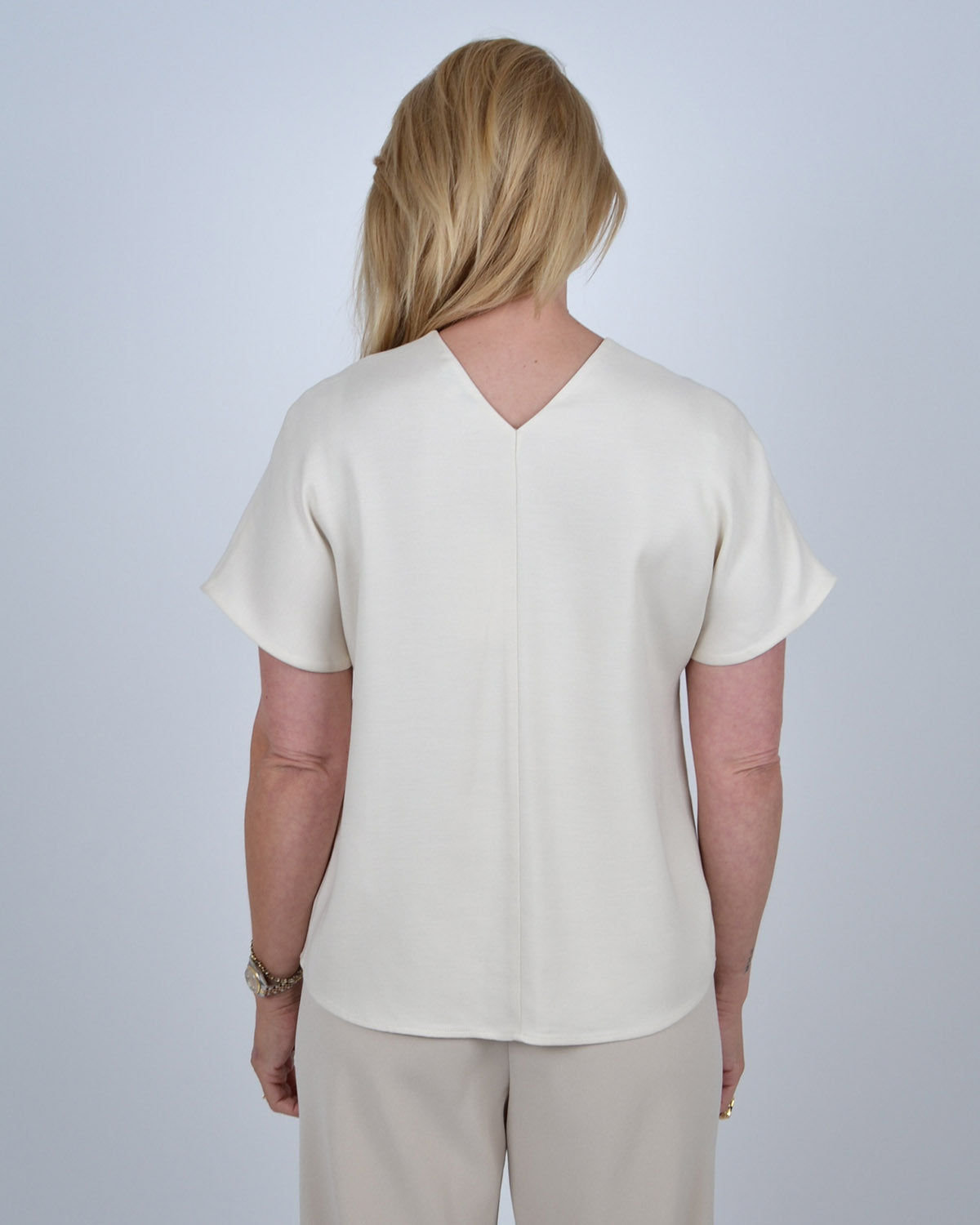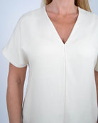 Kortermet bluse i delikat, lys beige fra Vince! Easy V-Neck Popover kommer i en behagelig viskosekvalitet og har flatterende v-utringning både foran og bak samt en løs og avslappet passform.