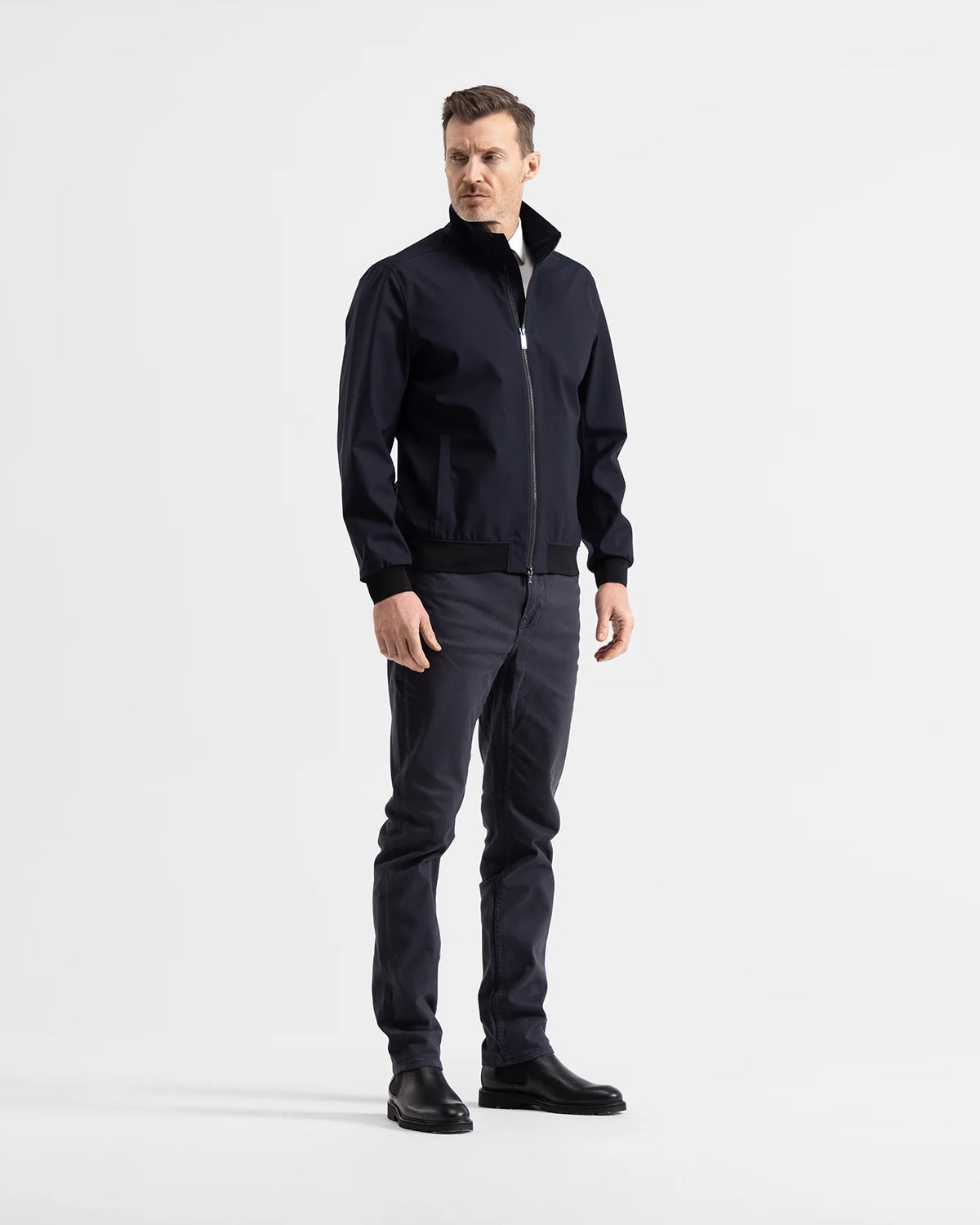 Svært teknisk jakke med luksuriøs japansk ullfinish. Det skarpe, strukturerte ytterstoffet skjuler avansert teknologi, noe som gjør den til et virkelig bemerkelsesverdig plagg. Den perfekte blandingen av japansk kvalitet og skandinavisk design.