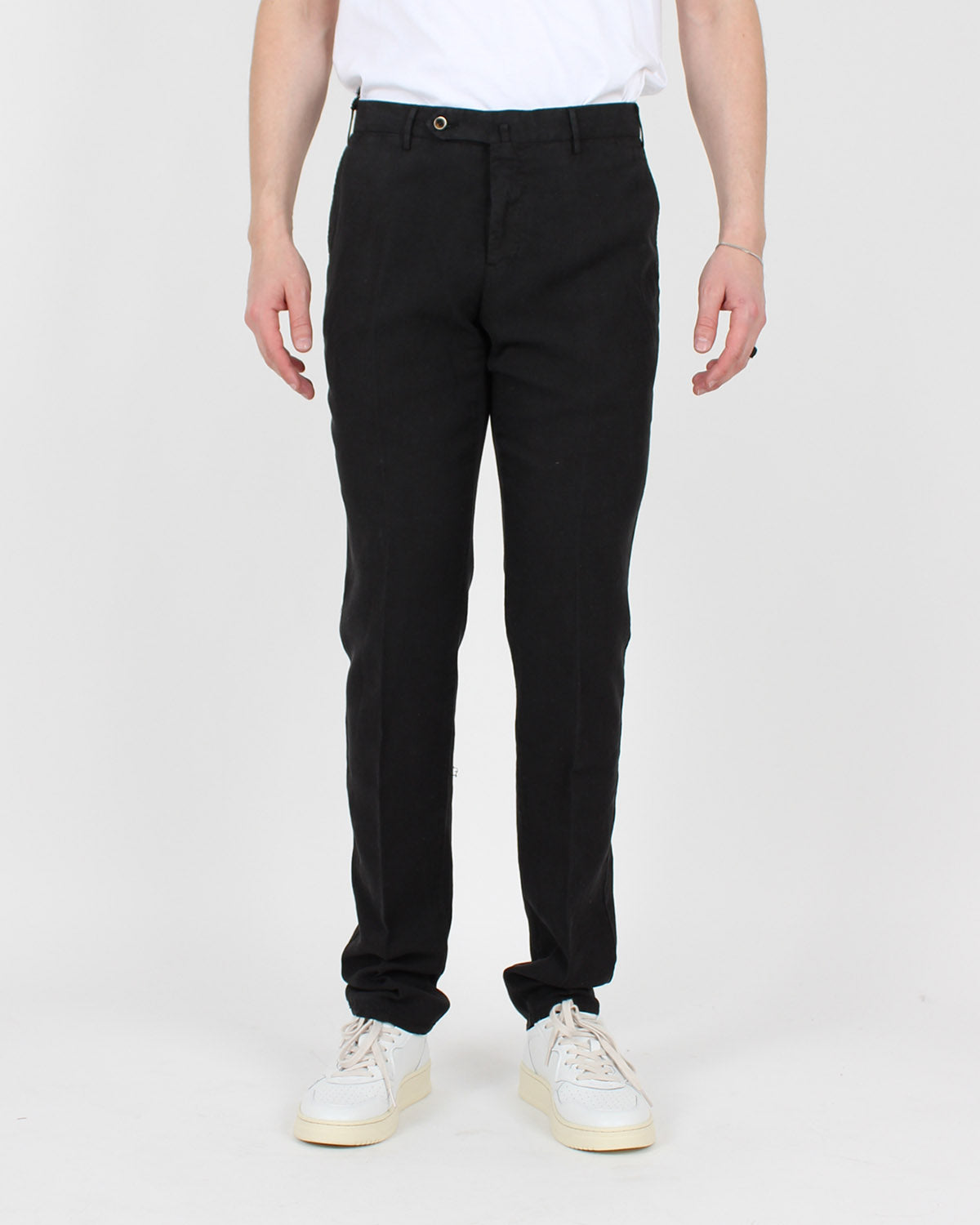 Sort chinos til herre fra PT 01. Buksen kommer i rålengde, men vi hjelper deg med å sy den opp til din perfekte lengde.